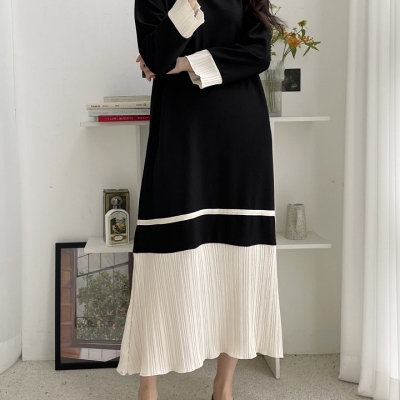 lu.배색주름롱원피스
